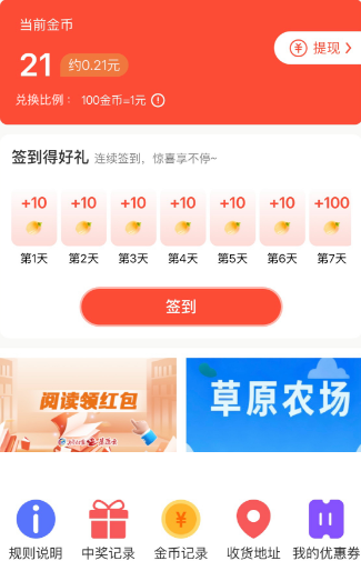 金币兑换 阅读/签到任务