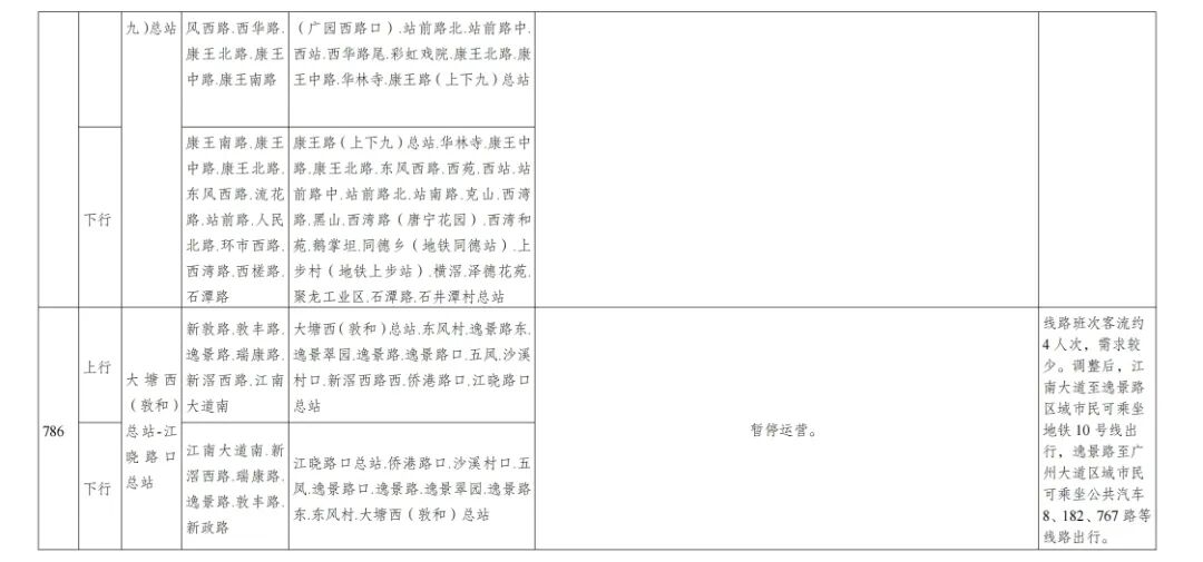 (十九)公共汽车江高(广技师白云校区)总站更名为公共汽车广师大(白云校区)总站,公共汽车523、652、703、843、977路等线路停靠该站;公共汽车江高(广技师白云校区)站(双向)更名为公共汽车广师大(白云校区东门)站(双向),公共汽车472路停靠该站;公共汽车环镇西路站(双向)更名为公共汽车广师大(白云校区南门)站(双向),公共汽车652、703路停靠该站。