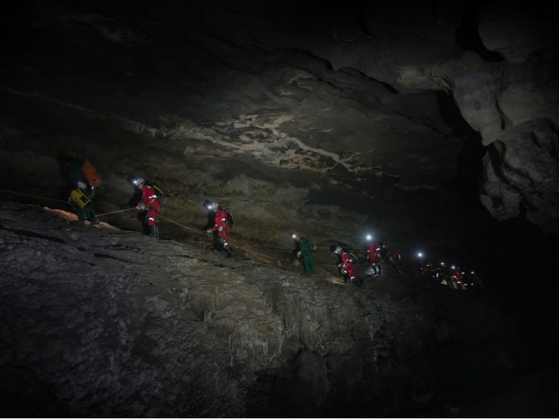 2025年12月,航天员在洞穴训练开展团队协作训练。