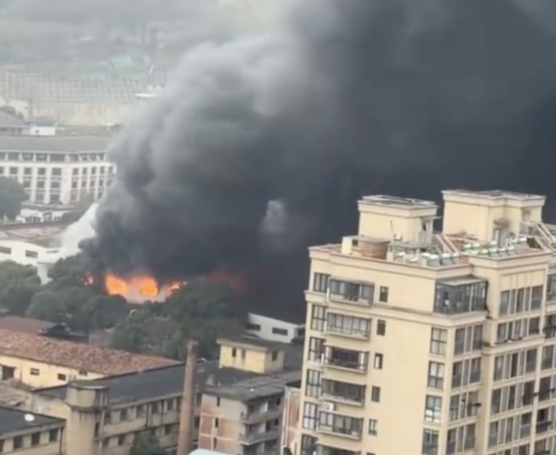 1月5日,浙江新昌县上礼泉工业园区一存放废弃家电的仓库发生火灾。