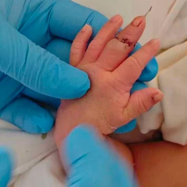 新生儿父亲盛先生表示,由于孩子太小手术难度高,经过2次转院才在无锡市第九人民医院将断指接上。
