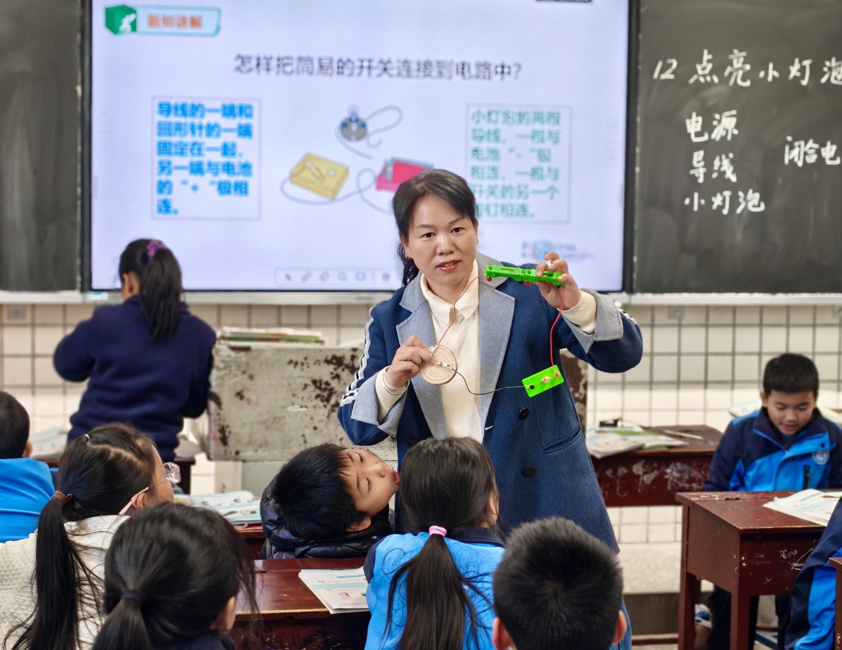 四年级孩子们最期待的,是每周的科学课。为了让课堂“活”起来,陈春燕自费买来放大镜、导线、小灯泡。在《生活中的电》这一课,她带着孩子们用橘子、柠檬制作“水果电池”。当电极插入果肉,小灯泡倏地亮起时,惊呼与笑声瞬间充满了教室。“原来科学就是生活里的魔法!”有孩子在日记里这样写。她还借助多媒体,带孩子们“云游”山外的世界,用“课堂闯关”激发他们的好奇心。沉寂的课堂,渐渐有了光。