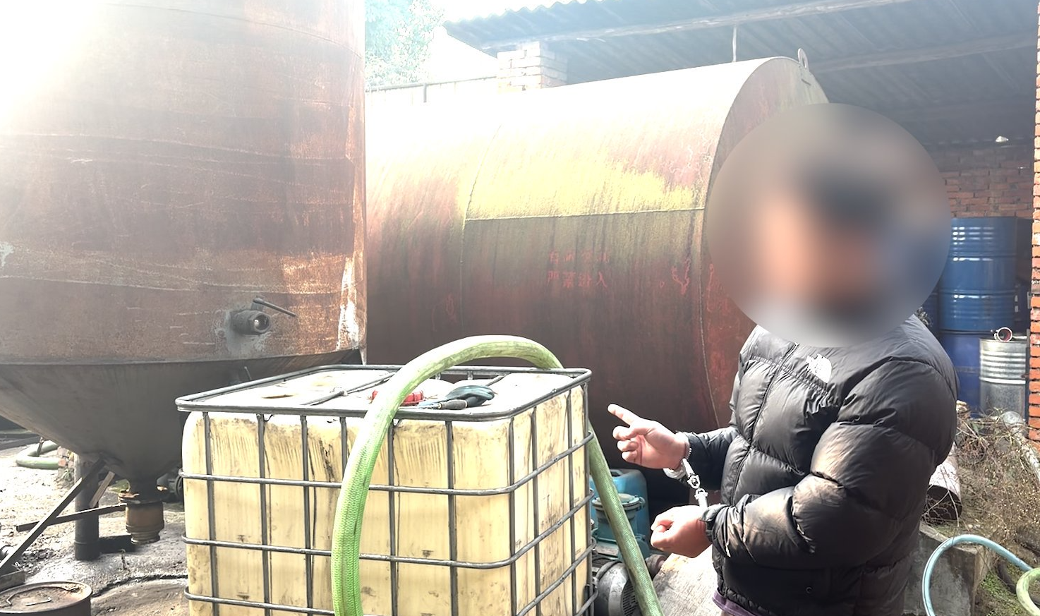 一个看起来不大的院子内,密密麻麻地耸立着几个储油罐,不清楚的,还以为是一家“正规”的生产企业。其实,这是一处私设的储油点。