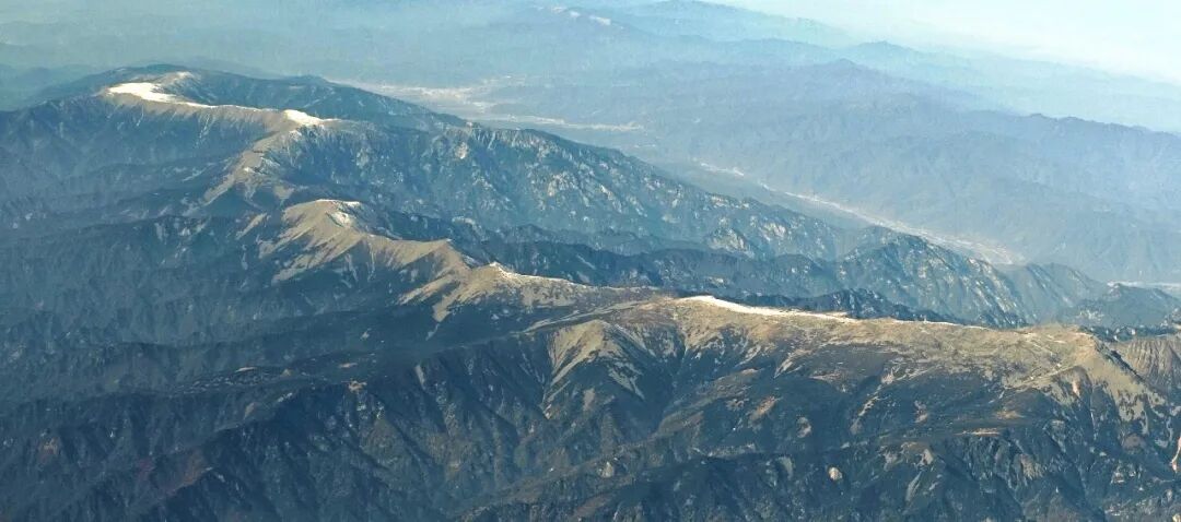 万米高空航拍中国南北分界线秦岭,著名的“鳌太”线被白雪勾勒得格外明显。(资料图片/ IC photo)