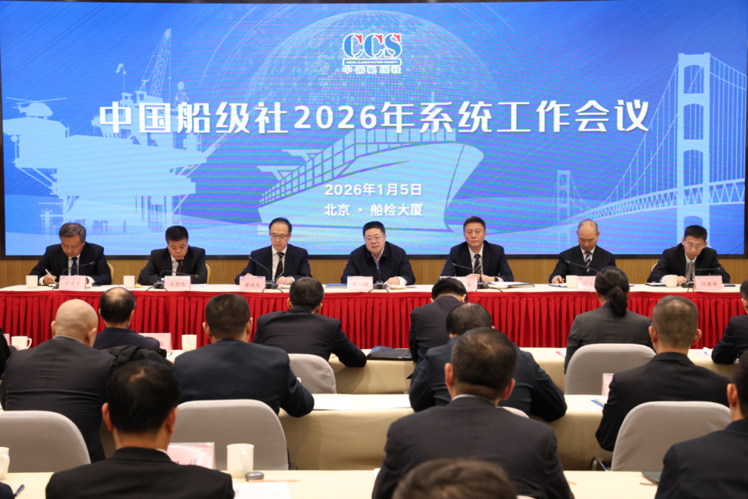 1月5日,2026年中国船级社系统工作会在北京召开。会议深入贯彻落实中央经济工作会议精神,落实全国交通运输工作会议部署,全面总结“十四五”时期和2025年工作,分析形势,部署“十五五”和2026年重点工作,为全面开启世界一流现代化船级社建设新征程开好局、起好步。交通运输部党组成员、副部长李兴湖出席会议并讲话,中国船级社社长赵晏作工作报告,党委书记蔡琰先主持会议。