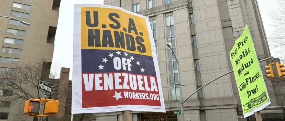 法官要求马杜罗3月17日再次出庭参加听证。法院外,抗议者聚集,呼喊口号,要求释放马杜罗,抗议美国军事干涉委内瑞拉。一些人举着“释放马杜罗总统”“不要向委内瑞拉开战”“停止对委内瑞拉的非法战争”等标语横幅。