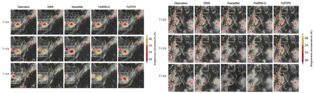 基于风云四号卫星数据,DDMS实现了对我国及周边区域约2000万平方千米区域、未来4小时内每15分钟一次的高分辨率对流预报,在不同空间尺度(4000米至48000米)和不同季节均表现出稳定的预报能力,不仅在短时预报中表现优异,在2小时至4小时的较长时效预报中仍然保持较高的可信度。