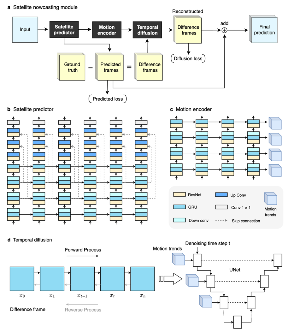 为提升预报精度,团队引入近年来在图像生成领域表现卓越的扩散模型,提出面向卫星数据的深度扩散模型(DDMS)。