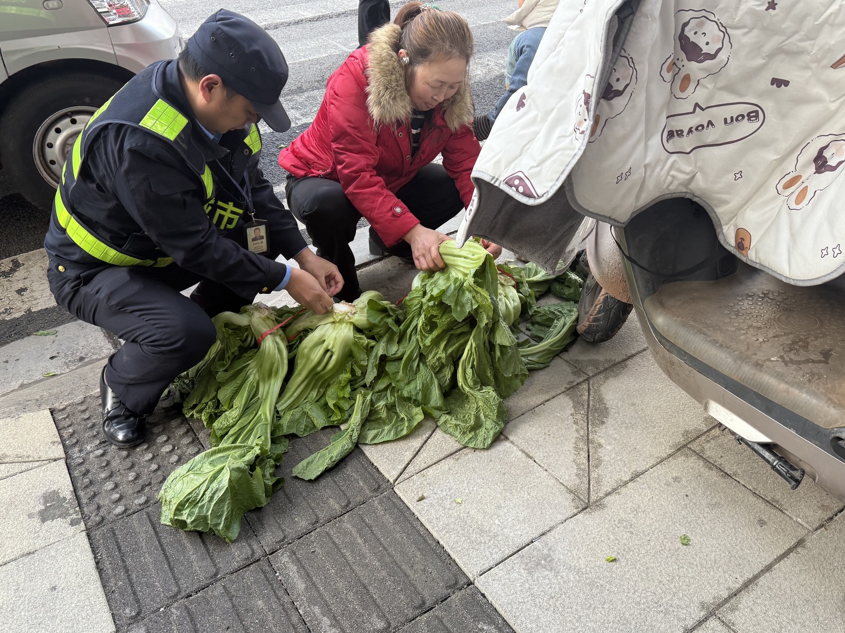 “婆婆,您把这个摊位挪一下,摆在这里影响行人通行,车过来容易撞到你,不安全。里面的市场有专门的摆摊区域,买卖方便!”1月6日上午10时,雁江区和平南路路段,资阳市城管局执法人员蹲下身,帮助摊贩将蔬菜捆扎整齐,引导其前往附近市场经营。