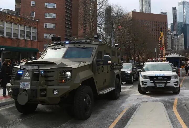 1月5日,委内瑞拉总统马杜罗乘坐的车辆离开美国纽约南区联邦地区法院。新华社记者 刘亚南 摄
