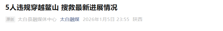 近日,“5人元旦穿越小鳌太线,4人失联超两天”引发广泛关注。