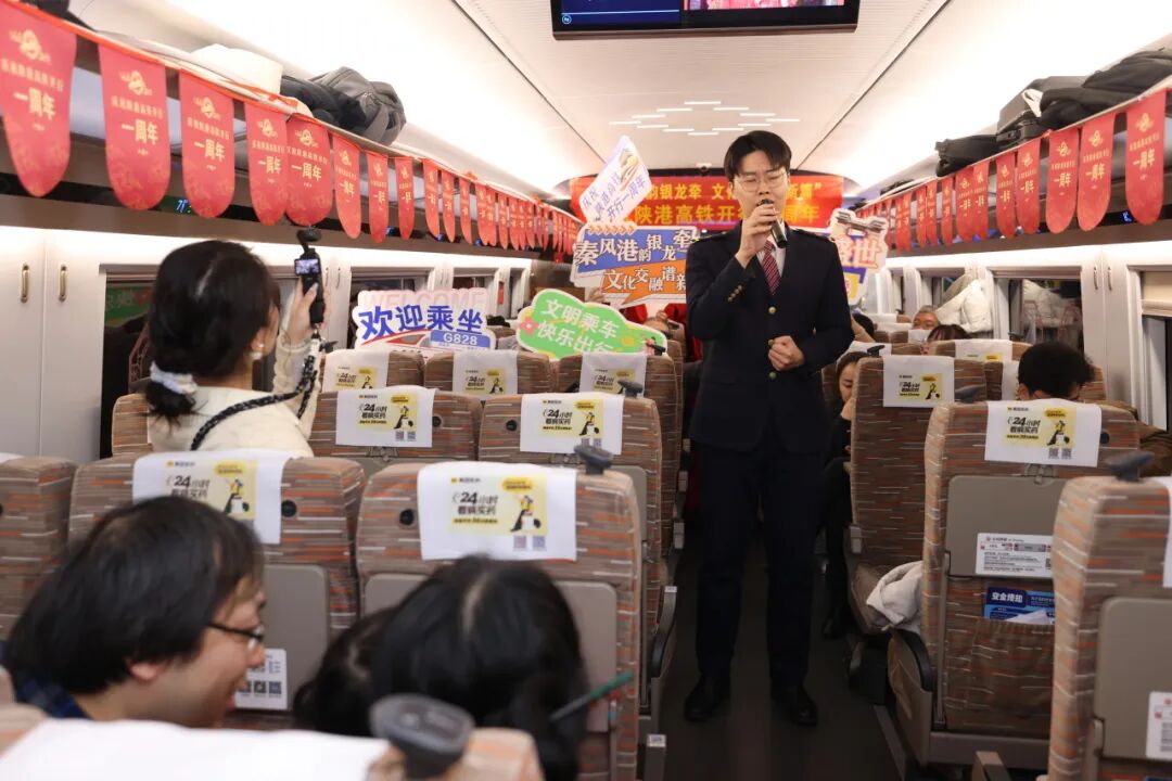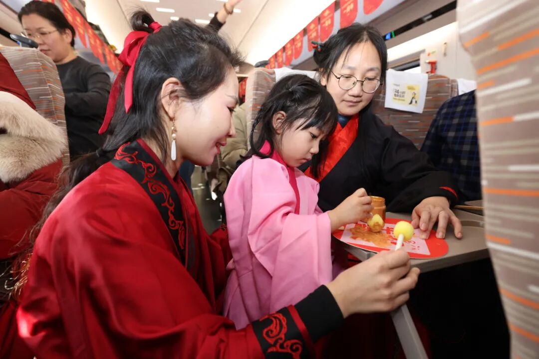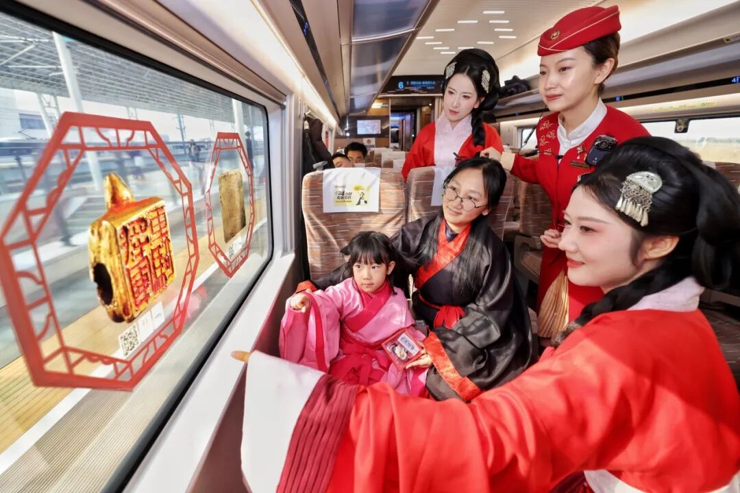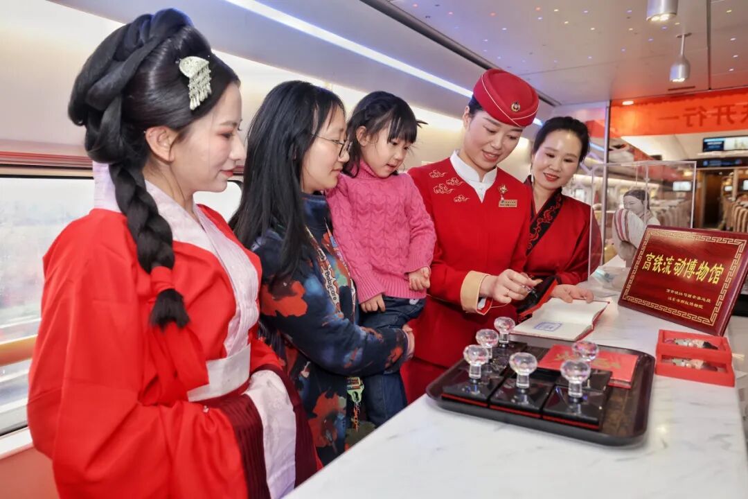 “我们把整个文化雅集‘搬’上车厢,用最鲜活的方式迎接每一位旅客。”列车长杨睿说,“一年来,我们深耕‘文化+服务’模式,优化跨境服务流程、提升多语种服务能力,让‘高铁流动博物馆’不仅有文化厚度,更有服务温度。”