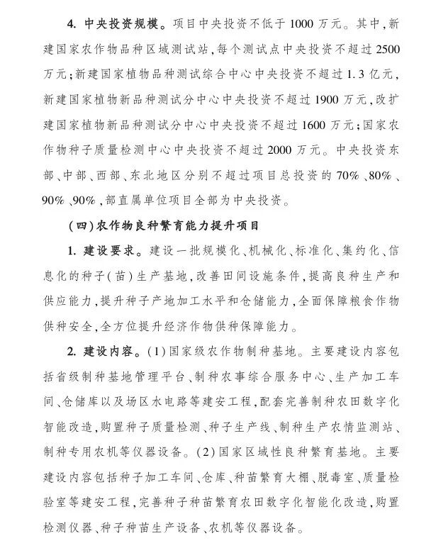 2026年《现代种业提升工程项目》支持4大方向、19个具体实施项目,中央财政扶持资金1000-1亿: