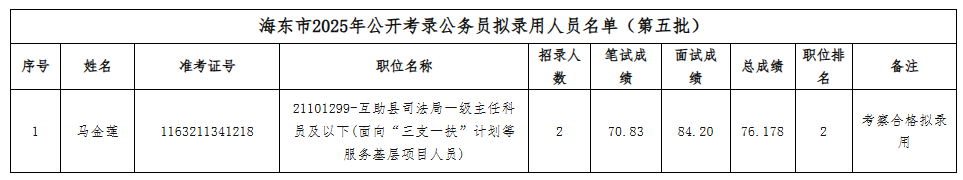 海东市2025年公开考录公务员拟录用人员公示(第五批)