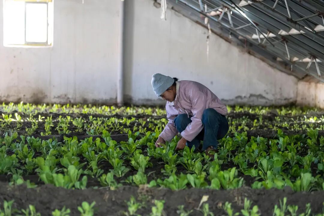 她热情地邀请我们走进温室大棚,蹲下身,指向一片青翠的菜地说:“你看,这是我们前阵子种的上海青,再有几天就能收了。到时候,我会帮村民联系销售渠道,一部分对外出售,余下的大家分着吃,新鲜又健康。”