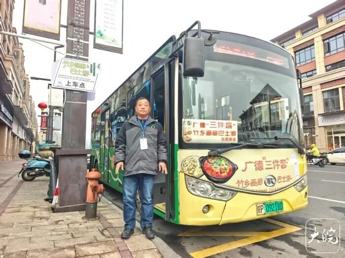 赵守清是其中一趟特色线路的公交司机。这是一条环线,从绥安路上火爆的卡旺卡、詹记桃酥门店出发,途经多个广德著名的旅游打卡点,再回到绥安路。