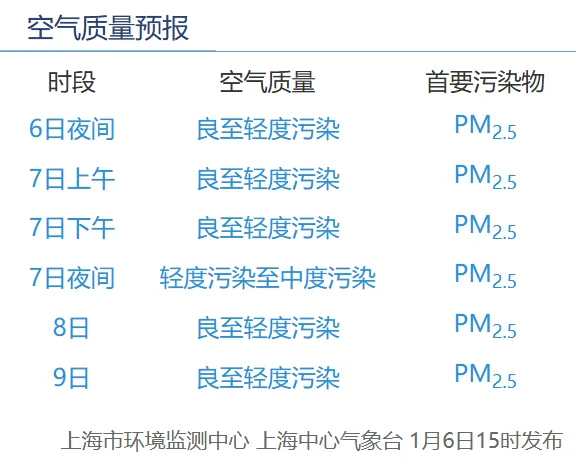 据上海环境消息,6日夜间、7日夜间至8日上午、9日夜间,受上游污染输送叠加局地累积影响,预计出现PM2.5污染过程,短时可达中度污染。