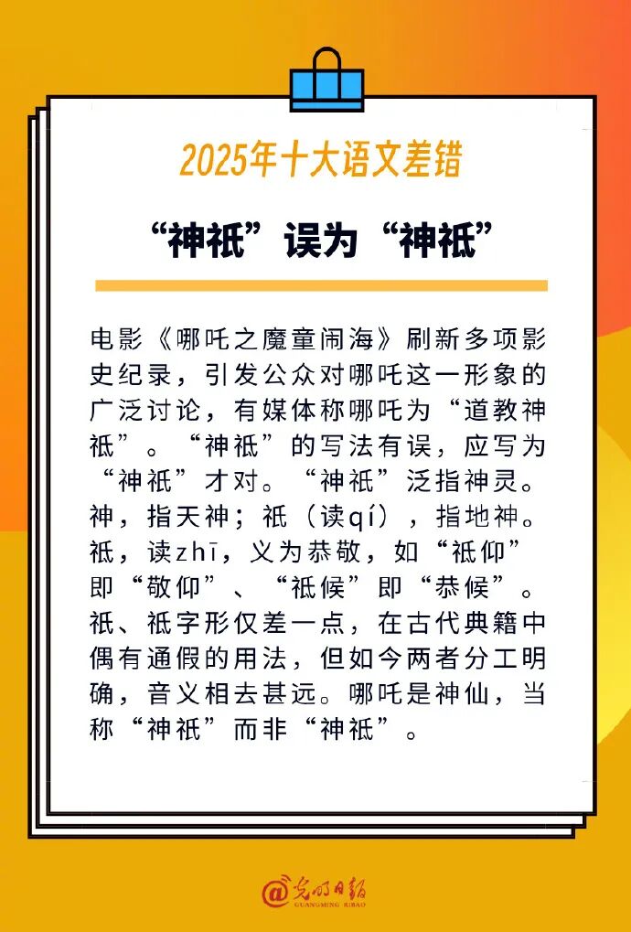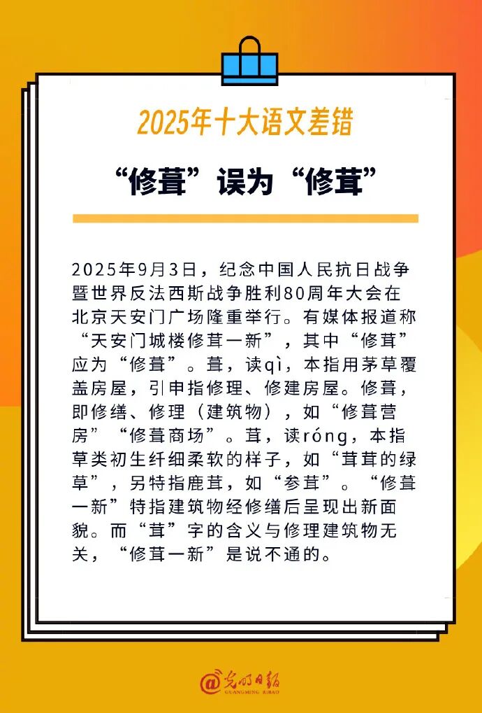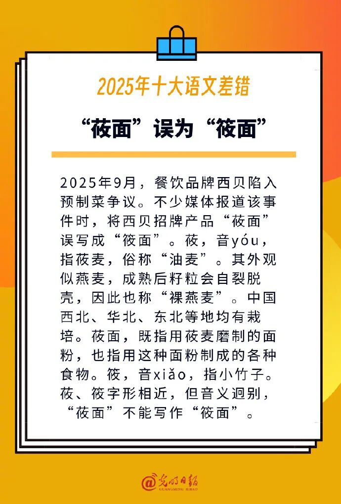 2025年十大语文差错包括: