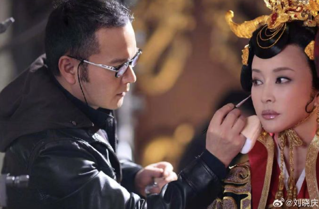 两张图片,一张是知名化妆师毛戈平为刘晓庆化妆,另一张则是名为《武则天传奇》的剧本。