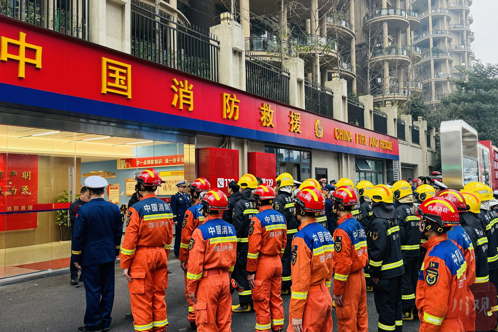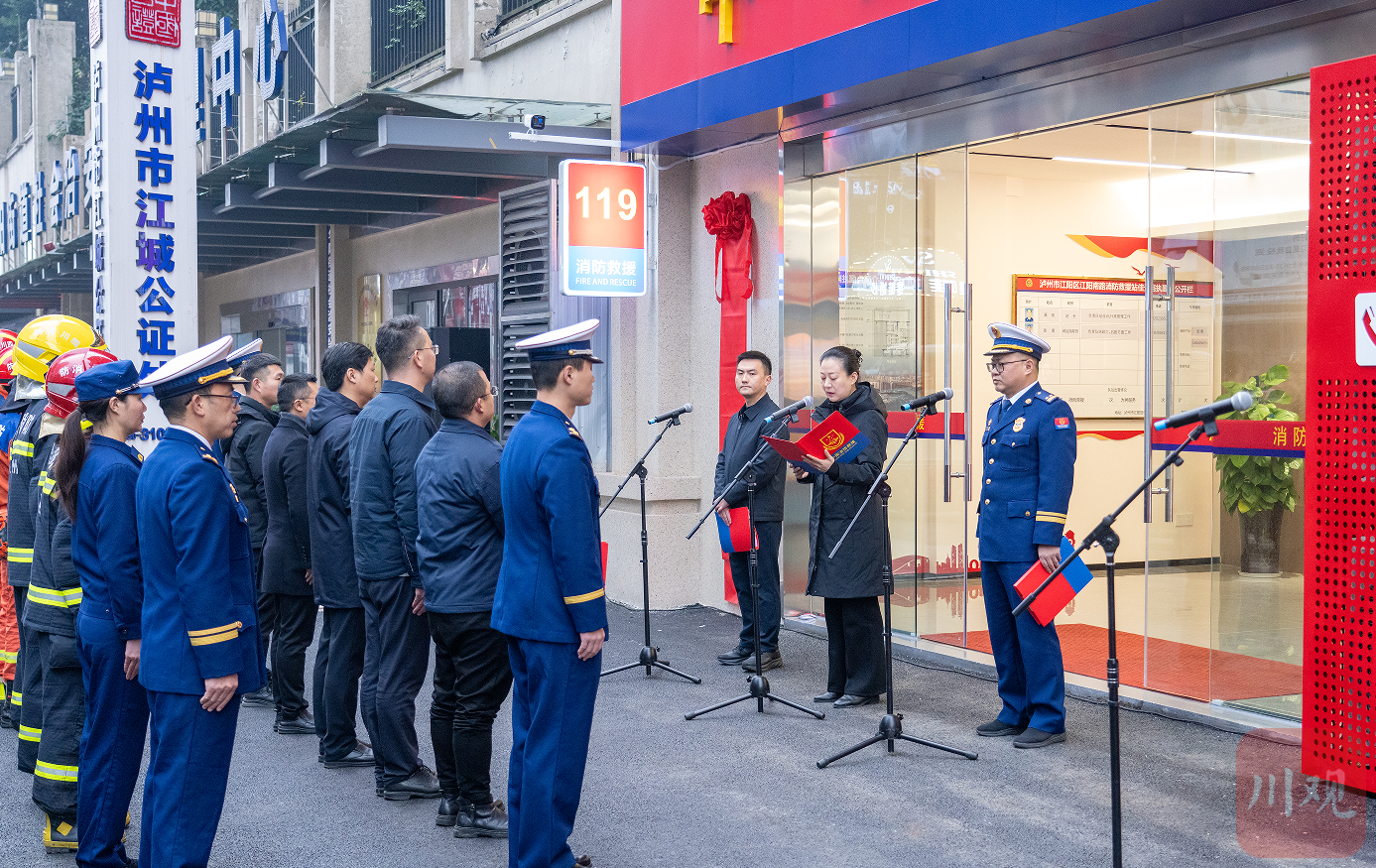 1月7日上午,泸州市江阳区佳景路金融商圈社会治安综合治理中心旁,全市首个在核心商圈建设的“防、灭、宣、救”一体化消防救援前置站点正式投入使用。