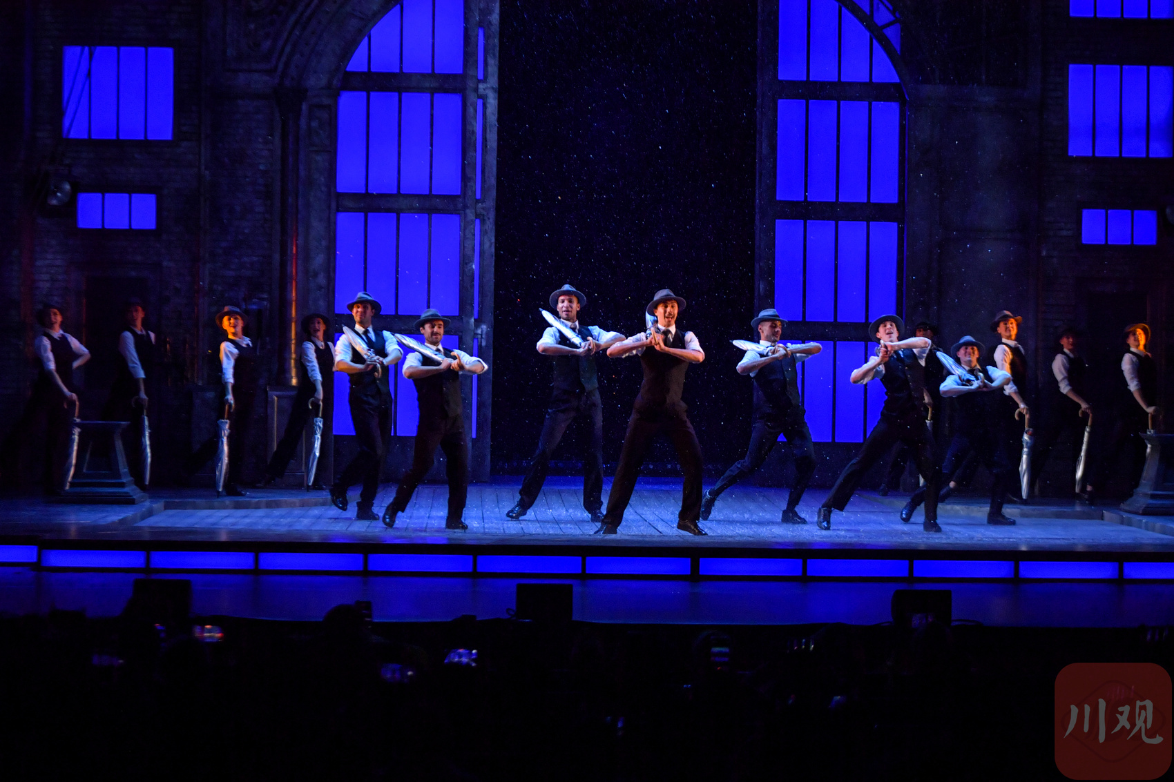 记者在现场看到,《雨中曲》最引人入胜的舞台奇观,莫过于其还原的“雨中舞台”,雨水在灯光下闪烁,舞步踢起的水花仿佛音符般跳跃,前排观众需要穿雨衣观看。每场演出要使用约6吨温水,通过精密的高科技喷淋系统,在舞台上形成连绵雨幕,雨水从舞台上方倾泻而下,演员在雨中踢踏起舞,水花与舞步交织,营造出令人惊叹的视觉效果。