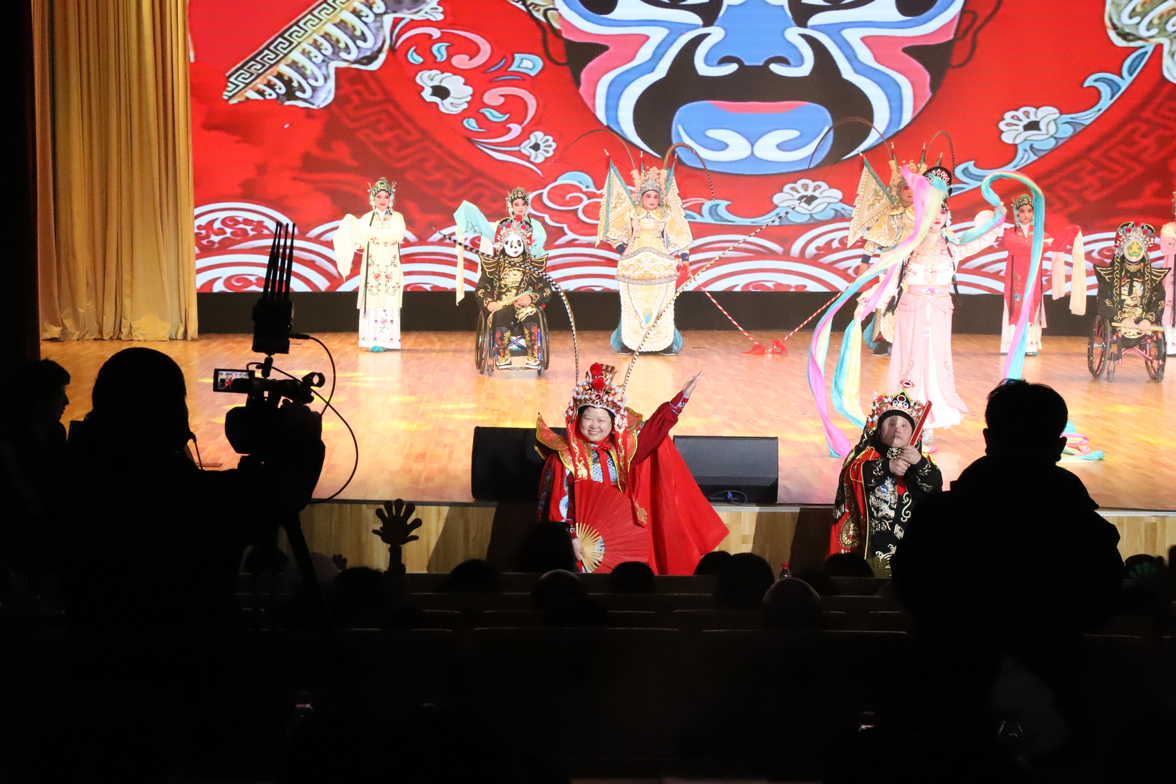 旌阳区残联选送的聋人舞蹈《灼灼千姿》以灵动舞姿展现了生命的坚韧与美丽;盲人歌手衣思阿牛一曲《天路》清澈悠扬,唱出了对梦想的执着攀登;情景剧《心中的色彩》则深情讲述了一位残疾人在社会帮扶下,于逆境中成长的感人故事;舞蹈《玉盘》展现了特殊教育学校孩子们纯净的青春梦想;葫芦丝演奏与川剧《涅槃绽放》则彰显了残疾人对传统文化的热爱与别样坚守,尤其是“变脸”、“吐火”绝技的展示,引来满堂喝彩。