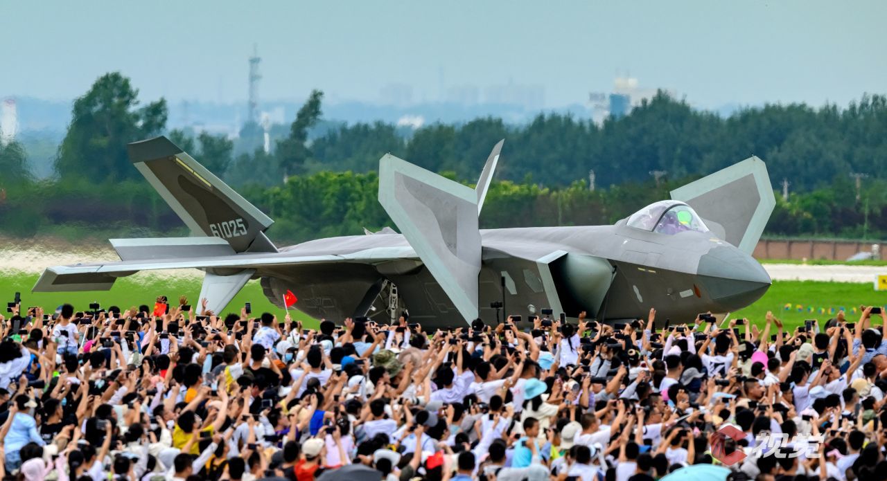 2023年7月空军航空开放活动·长春航空展现场,“成都造”歼-20战斗机表演结束着陆滑回观展区时,受到现场观众热烈追捧,飞行员也放下减速板,向观众“行礼”致意。