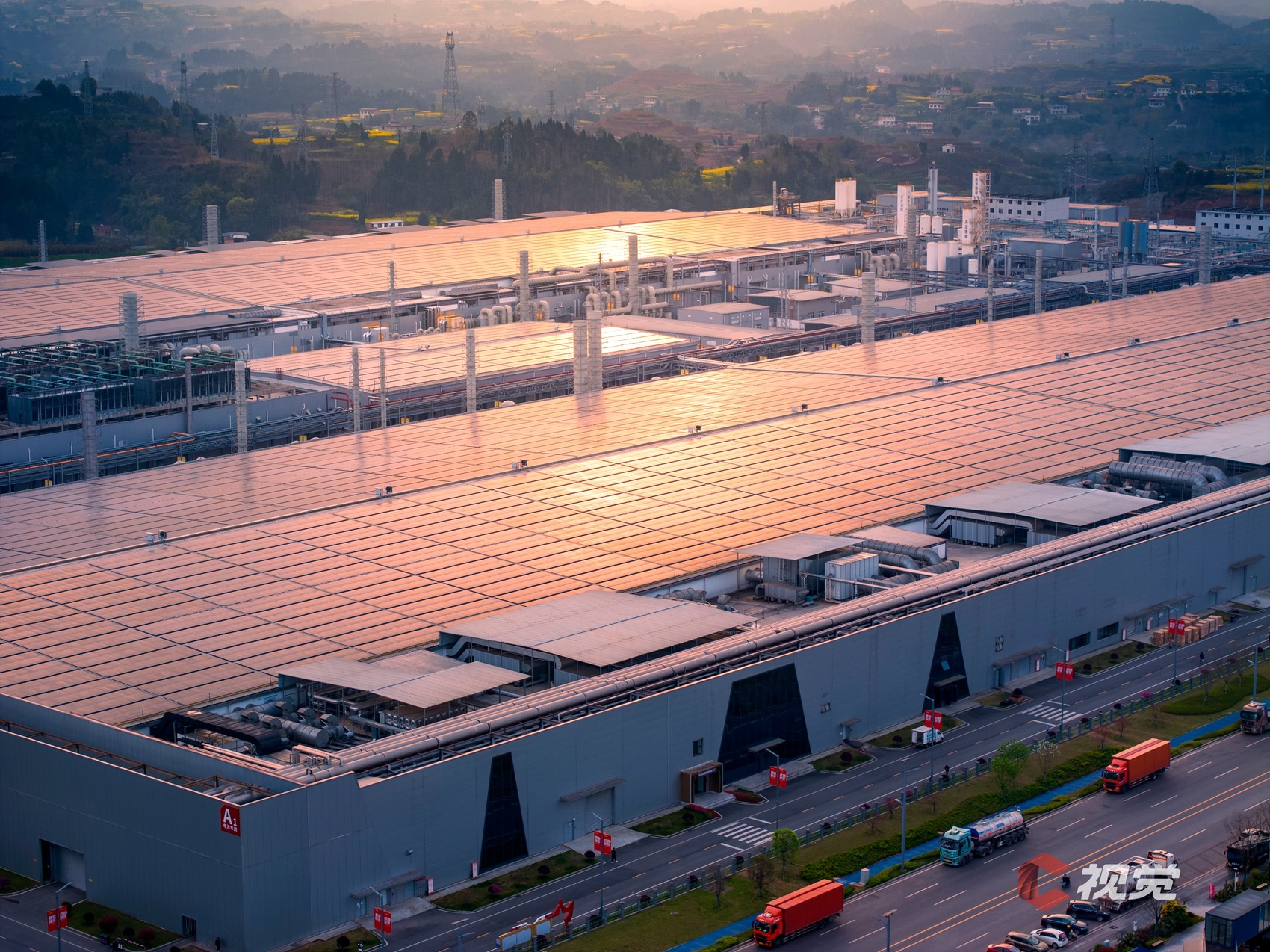 2025年6月,宜宾凯翼汽车有限公司完成光伏屋顶全覆盖,近3万平方米太阳能板如蓝色铠甲铺陈,年发电量超500万度。