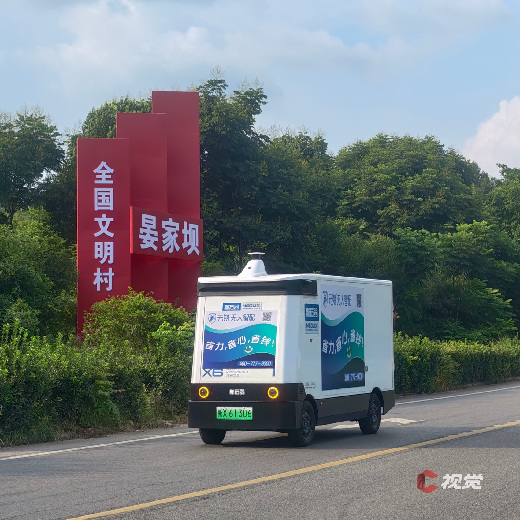 2025年7月19日,一辆"资阳造"无人配送车正行驶在全国文明村、全国美丽宜居村资阳市雁江区保和镇晏家坝村的道路上。
