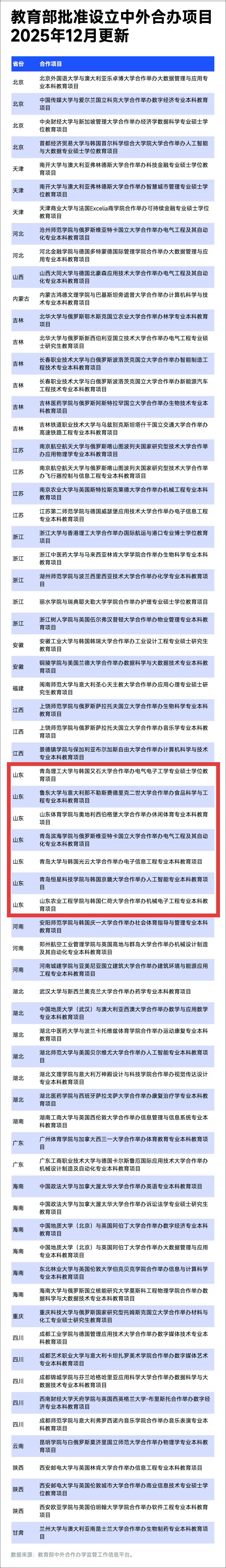 近日,教育部公布了最新一批中外合作办学机构和项目审批结果。