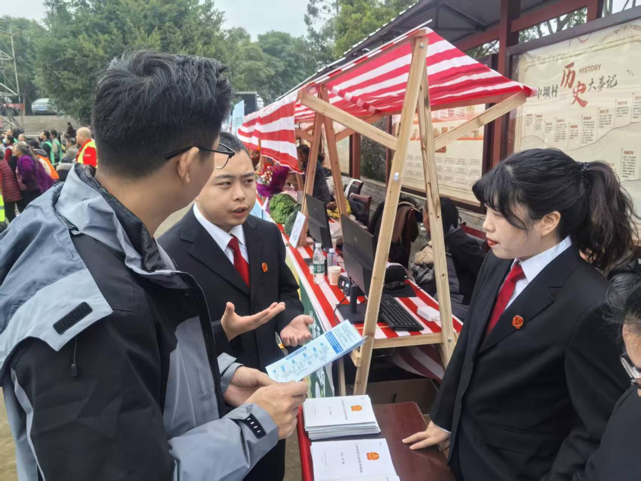 法庭干警结合洋溢着节日热情的会场,在人流集中区域设立宣传点,向村民、过往游客及商户发放精心编制的普法手册、宣传单。针对乡村旅游和农产品销售中高频出现的买卖合同履行、旅游合同履行、住宿餐饮消费维权、人身财产安全保障等问题,干警们用通俗易懂的语言解读相关法律法规,并佐以案例白皮书进行典型案例分析,引导游客文明旅游、理性维权,督促经营者诚信经营、守法经营。