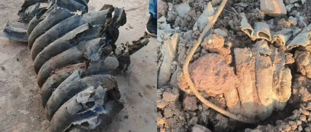 挖出的厂区外波纹管(左)和厂区内部波纹管(右) 来源:东莞环境生态微信公众号