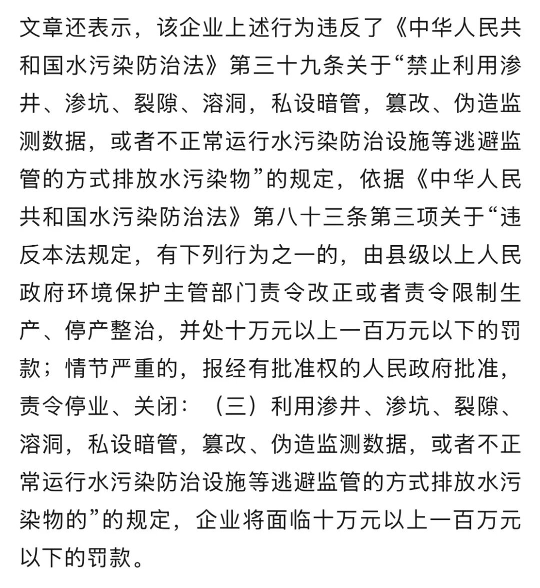 1月6日晚,微信公众号“东莞生态环境”发布《锦坤实业有限公司通过暗管偷排生产废水被举报查处》一文称,近日,根据群众投诉举报,广东省生态环境厅指导东莞市生态环境局组建检查组,对锦坤实业有限公司进行现场检查。经过连续多日调查,该企业通过暗管偷排生产废水被查处。