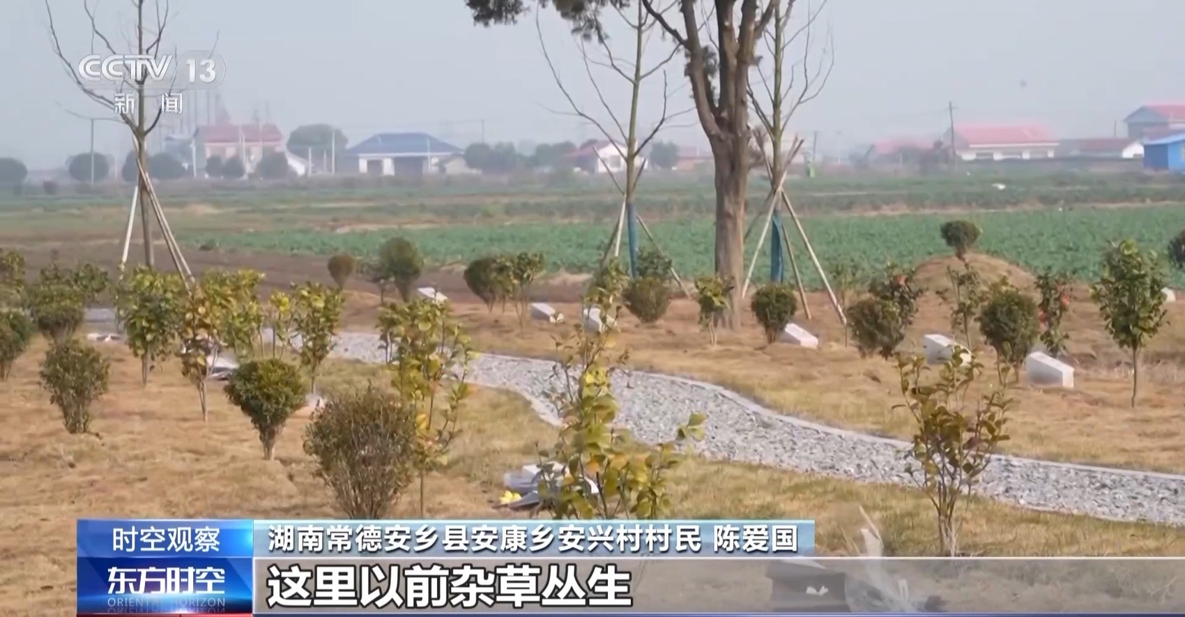 湖南常德安乡县安康乡安兴村村民 陈爱国:这里以前杂草丛生,有些用大理石建的墓碑,白天看见都有点怕。通过政府大力支持,把这里打造成花园式的公墓区。