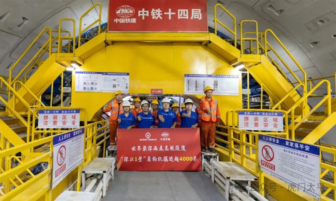 虎门融媒体中心消息:1月6日,在广东珠江入海口海平面下109米深处,随着开挖直径13.42米的“深江1号”盾构机完成第2000环管片拼装,中铁十四局承建的深江铁路珠江口隧道虎门段掘进突破4000米,深江铁路海底高铁盾构隧道建设取得重要阶段性进展。