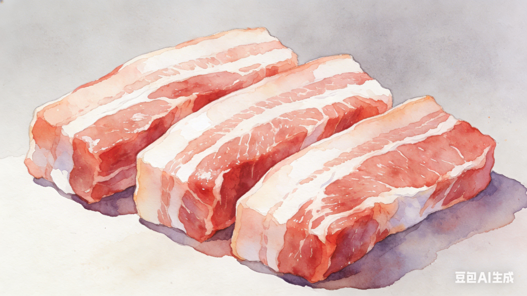 反观猪肉,薄切时脂肪层和瘦肉层像两块“独立板块”,分层明显,稍微用力就会分离。想要将猪肉切得和牛羊肉一样薄,不仅难度大,切完后的卖相分分钟变“散装PPT”。