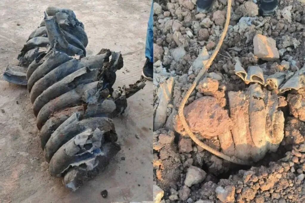 挖出的厂区外波纹管(左)和厂区内部波纹管(右) 来源:东莞环境生态微信公众号