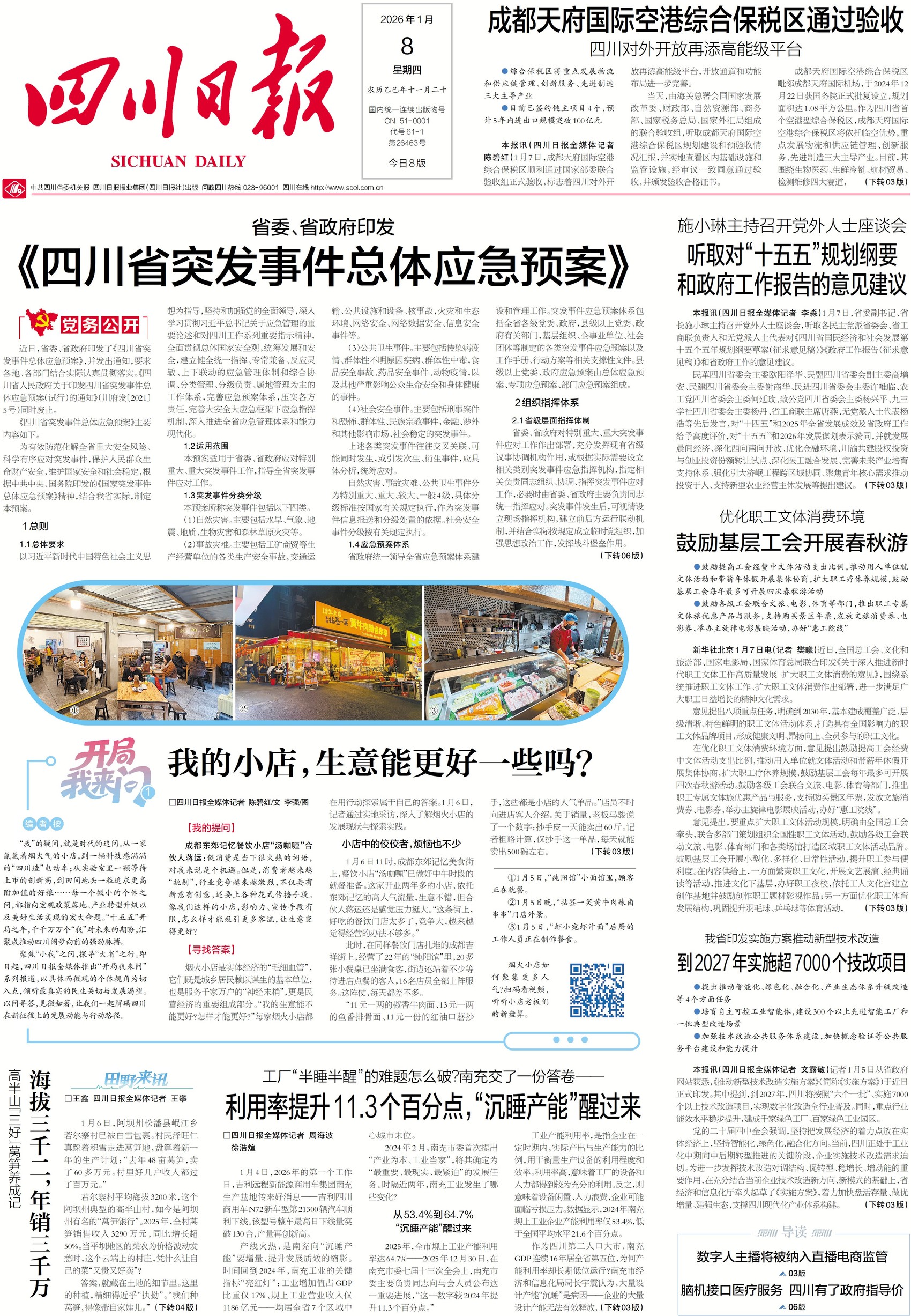 “我”的疑问,就是时代的追问。“十五五”开局之年,千千万万个“我”对未来的期盼,汇聚成推动四川阔步向前的强劲脉搏。聚焦“小我”之问,探寻“大省”之行。即日起,四川日报全媒体推出“开局我来问”系列报道。今天我们关注烟火小店。小店的生意会不会更好?快随一版问一问。