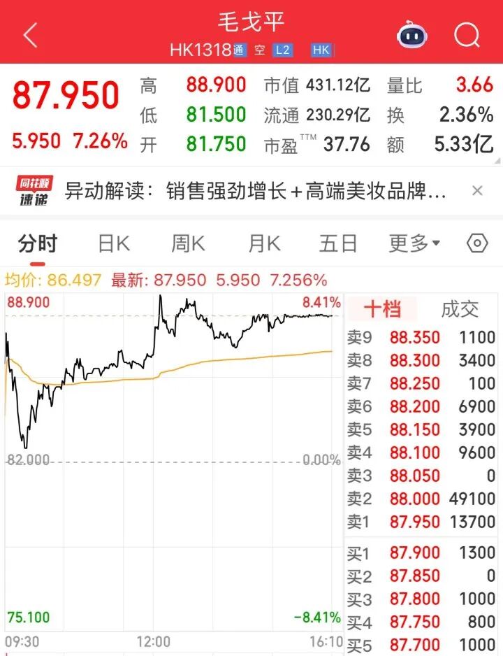 毛戈平公司于2000年在杭州成立。2024年12月10日,屡败屡战的毛戈平公司在香港上市,为港股“国货高端美妆第一股”,发行价29.8港元,曾获超过900倍认购,是当时的“冻资王”。