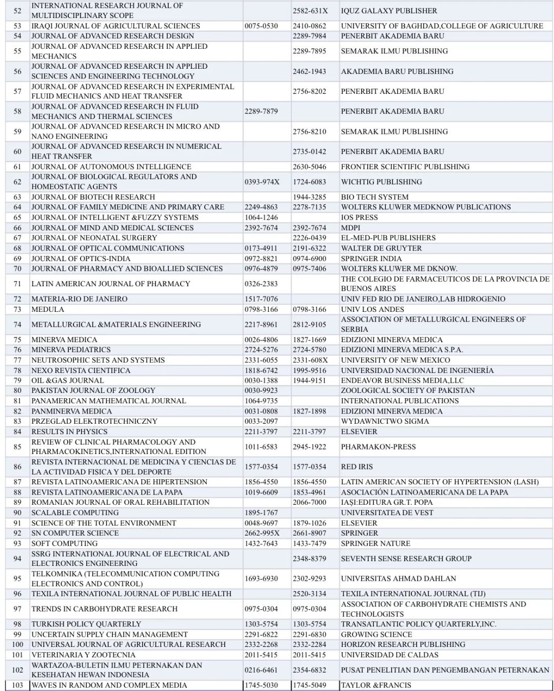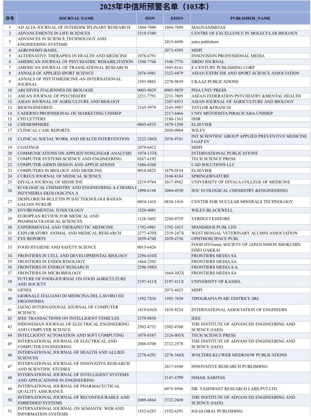 中信所《2025年度国际期刊预警名单》完整版如下: