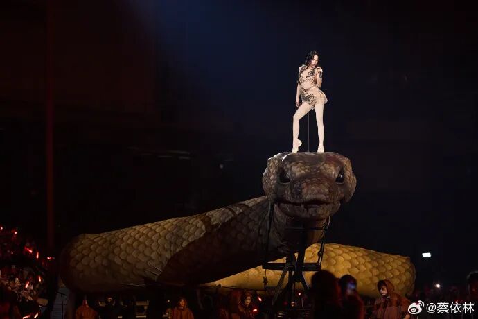 近日,蔡依林在“pleasure”巡回演唱会舞台上脚踏30米巨型机械蛇出场,引发热议。