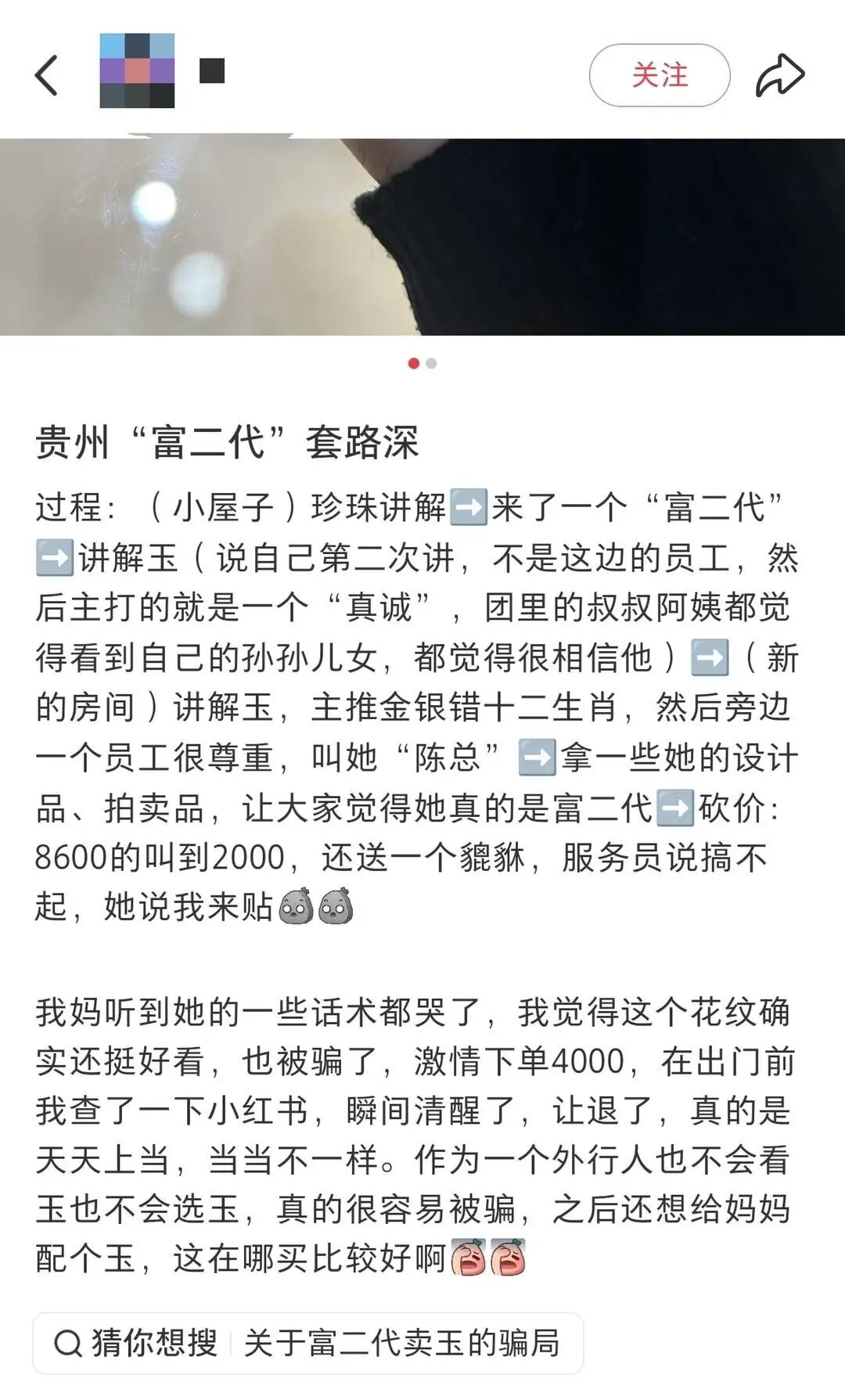 一名四川游客在小红书上分享了自己母亲受骗的经历:“那个(“富二代”)女孩长得特别纯真,说话支支吾吾的,让人觉得她真是第一次讲。她说前一天没人听她讲,今天看到大家这么认真特别感动,要给大家‘福利价’。”