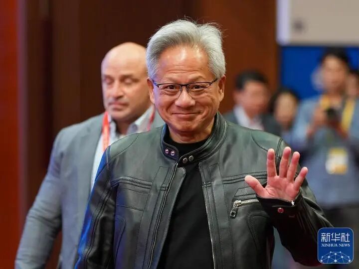2025年7月17日,英伟达公司总裁兼首席执行官黄仁勋(前)参加第三届链博会先进制造主题活动。新华社记者 鞠焕宗 摄