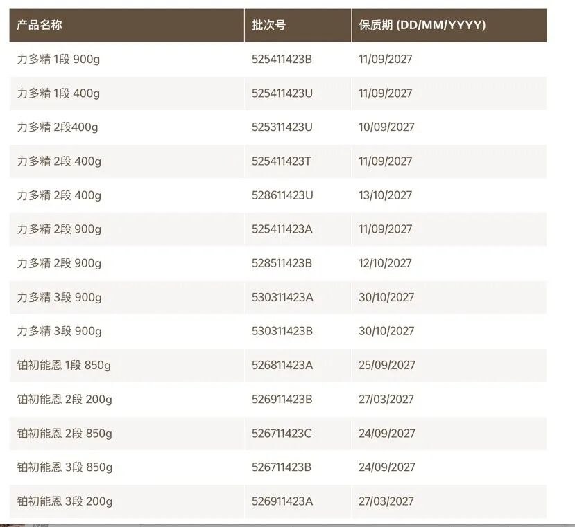 近日,全球食品巨头雀巢公司因主要供应商提供的ARA(花生四烯酸)原料被检出潜在质量问题,在欧洲多国主动发起预防性召回。雀巢中国方面随后确认,中国市场少数产品可能受到影响,已启动对部分特定批次婴幼儿配方奶粉的回收工作。截至目前,中国市场的召回涉及力多精、铂初能恩、舒宜能恩和惠氏膳儿加儿童成长奶粉共4个品牌,总计30个批次的产品。
