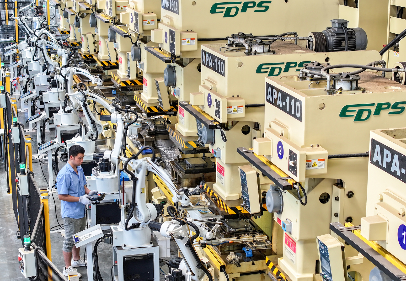 四川宜田科技有限公司厂房内,自动化设备高速运转。(邱海鹰 摄)