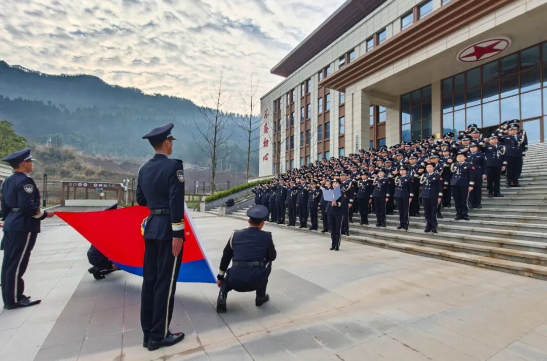 1月7日上午,晨光洒落通江,五星红旗在庄严注目中冉冉升起。全体司法警察整齐肃立,警徽闪耀,国歌激昂,这一刻,忠诚与使命在心中澎湃如潮。