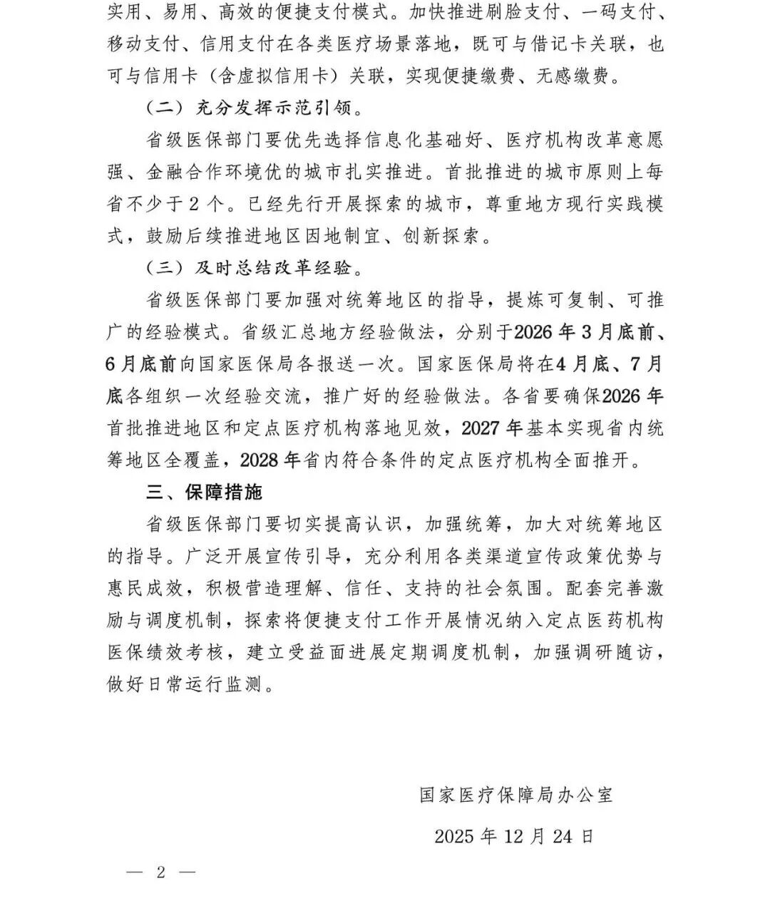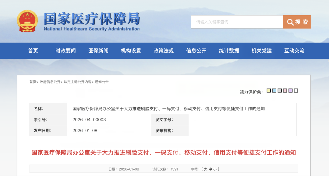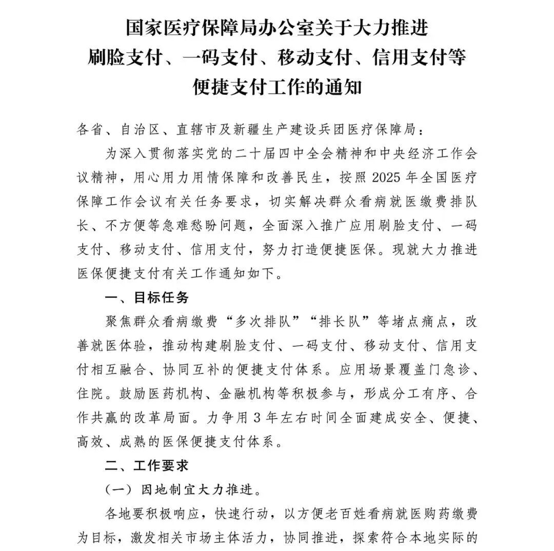 国家医疗保障局办公室1月8日发布《关于大力推进刷脸支付、一码支付、移动支付、信用支付等便捷支付工作的通知》,力争用3年左右时间构建覆盖门急诊、住院全场景的便捷支付体系。
