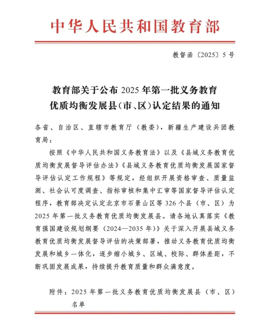 新疆入选第一批义务教育优质均衡发展县(市、区)公布名单