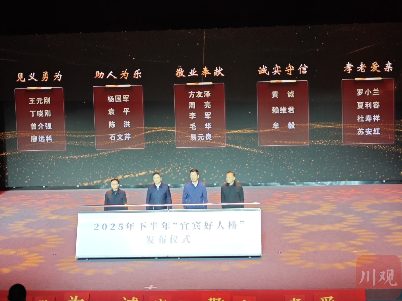 本次活动由中共宜宾市委宣传部、宜宾市精神文明建设办公室主办。评选涵盖助人为乐、见义勇为、诚实守信、敬业奉献、孝老爱亲五个类别。通过主题短片展播、情景舞台演绎、嘉宾现场访谈等形式,那些深藏于市井街巷的感人故事娓娓道来。
