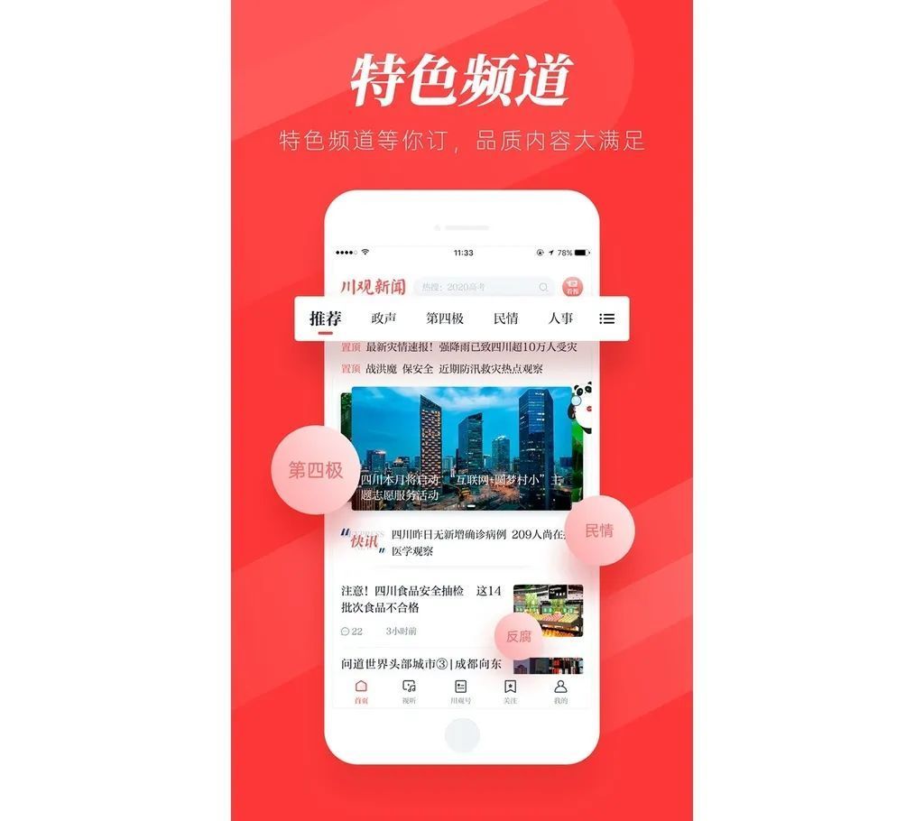川观新闻迭代强调“权威端”。首屏强化四川重要政经新闻首发、思想性观点性内容生产、调查性独家性新闻报道。做强学习专区、第四极频道、民情频道、问政频道等。